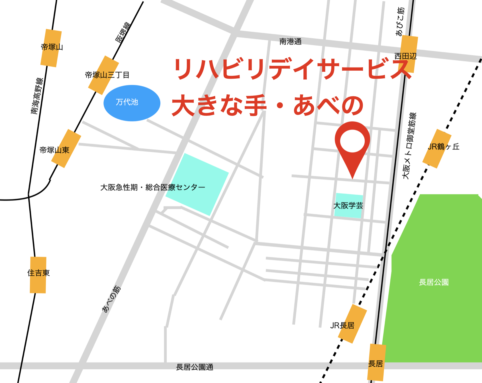 2020年3月に「リハビリデイサービス大きな手」の8店舗目として阿倍野区にオープン致しました。私たちは、「笑顔」をとても大切にしています。利用者様が安心、安全にご利用頂き、安定した質の良いサービスを提供していくことを私たちはお約束します。その中で、みなさんのいろんな笑顔に出会いたいと心から願っています。